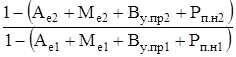 де Взп1 , Взп2 – витрати на оплату праці в базисному і новому періодах, грн/рік; Гв1 , Гв2 – валовий дохід у базисному і новому періодах, грн/рік; Ае1 , Ае2 – амортизаціоємність продукції в базисному і новому періодах, частки од.; Ме1 , Ме2 – матеріалоємність продукції в базисному і новому періодах, частки од.; Ву.пр1 , Ву.пр2 – питомі інші витрати в базисному і новому періодах од.; Рп.н1 , Рп.н2 – нормативна рентабельність продажів у базисному і новому періодах, частки од. Розділивши друге рівняння на перше, одержимо вираз для регулювання співвідношення обсягів виробництва і фонду оплати праці: