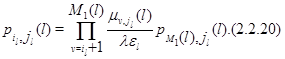 Здесь условие 2) гарантирует регулярность марковского процесса, который не может за конечное время делать бесконечное число скачков из одного состояния в другое. Замечание 2.4 . Если условия (2.2.12), (2.2.13) выполнены во всех узлах и ряд (2.2.25) сходится, то получается простой алгоритм для нахождения стационарных вероятностей: 1. Решается система линейных уравнений (2.2.1). 2. Проверяется выполнение условий (2.2.12), (2.2.13). 3. Определяется 4. Определяются 5. Находится стационарное распределение состояний сети При этом нормировку вероятностей можно производить не Замечание 2.5 . Нетрудно понять, что совместное стационарное распределение чисел заявок в узлах имеет следующую форму: