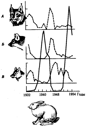 Рис. 11.1 Колебания численности особей в популяциях жертвы (заяц-беляк, сплошная линия) и хищников (А - рыси; B - лисицы; Д - волка) Численность особей выражена в процентах к минимальному из зарегистрированных значений, принятому за 100% Изменение генофондов популяций происходит как на подъеме, так и на спаде популяционной волны. При росте численности организмов наблюдается слияние ранее разобщенных популяций и объединение их генофондов. Так как популяции по своему генетическому составу уникальны, в результате такого слияния возникают новые генофонды с измененными по сравнению с исходными частотами аллелей. В условиях возросшей численности интенсифицируются межпопуляционные миграции особей, что также способствует перераспределению аллелей. Рост количества организмов обычно сопровождается расширением занимаемой территории. На гребне популяционной волны некоторые группы особей выселяются за пределы ареала вида и оказываются в необычных условиях существования. В таком случае они испытывают действие новых факторов естественного отбора. Повышение концентрации особей в связи с ростом их численности усиливает внутривидовую борьбу за существование. При спаде численности наблюдается распад крупных популяций. Возникающие малочисленные популяции характеризуются измененными генофондами. В условиях массовой гибели организмов редкие мутантные аллели могут быть генофондом потеряны. При сохранении редкого аллеля его концентрация в генофонде малочисленной популяции автоматически возрастает. На спаде волны жизни часть популяций, как правило, небольших по размерам, остается за пределами обычного ареала вида. Чаще они, испытывая действие необычных условий жизни, вымирают. Реже, при благоприятном генетическом составе, такие популяции переживают период спада численности. Будучи изолированными от основной массы вида, существуя в необычной среде, они нередко являются родоначальниками новых видов. Популяционные волны — это эффективный фактор преодоления генетической инертности природных популяций. Вместе с тем их действие на генофонды не является направленным. В силу этого они, так же как и мутационный процесс, подготавливают эволюционный материал к действию других элементарных эволюционных факторов. 11.3. ИЗОЛЯЦИЯОграничение свободы скрещиваний (панмиксии) организмов называют изоляцией. Снижая уровень панмиксии, изоляция приводит к увеличению доли близкородственных скрещиваний. Сопутствующая этому гомозиготизация усиливает особенности генофондов популяций, которые создаются вследствие мутаций, комбинативной изменчивости, популяционных волн. Препятствуя снижению межпопуляционных генотипических различий, изоляция является необходимым условием сохранения, закрепления и распространения в популяциях генотипов повышенной жизнеспособности. В зависимости от природы факторов ограничения панмиксии различают географическую, биологическую и генетическую изоляцию. Географическая изоляция заключается в пространственном разобщении популяций благодаря особенностям ландшафта в пределах ареала вида — наличию водных преград для «сухопутных» организмов, участков суши для видов-гидробионтов, чередованию возвышенных участков и равнин. Ей способствует малоподвижный или неподвижный (у растений) образ жизни. Так, на Гав