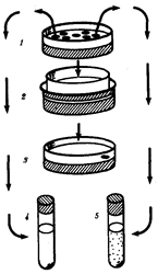 Рис. 11.9. Схема опыта, опровергающего факт непосредственного приспособления микроорганизмов к среде с антибиотиком (пояснение см. в тексте) В чашке Петри на поверхности твердой питательной среды микроб образует колонии (1 ). Специальным штампом отпечаток всех колоний переносили на среду (2 )со смертельной дозой антибиотика (J). Если в таких условиях вырастала хоть одна колония, то она происходила от колонии микробов, также устойчивых к данному препарату. В отличие от других колоний первой чашки Петри (4 ) она давала рост в пробирке с антибиотиком (5 ). Если число исходных колоний было велико, то среди них, как правило, находилась и устойчивая. Таким образом, речь идет не о направленном приспособлении микроба, а о состоянии преадаптации. Оно обусловлено наличием в геноме микроорганизма аллеля, блокирующего действие антибиотика. В одних случаях «устойчивые» микробы образуют фермент, разрушающий лекарственное вещество, в других — стенка клетки непроницаема для препарата. Появлению штаммов микроорганизмов, устойчивых к лекарственным препаратам, способствует неправильная тактика врачей, которые, желая избежать побочных эффектов, назначают низкие для микробов, сублетальные дозы. Появление форм, резистентных к ядам, наблюдается у насекомых, млекопитающих. Это явление имеет сходную основу: среди мутантных организмов находится устойчивая форма, которая подвергается положительному отбору в условиях действия отравляющего вещества. Например, устойчивость крыс к варфарину, используемому для их уничтожения, зависит от присутствия в генотипе определенного доминантного аллеля. Возможность прямого, непосредственного приспособления организмов к среде обитания допускалась некоторыми биологами еще в 40—50 гг. прошлого столетия. Биологическая целесообразность строения и функций организмов складывается в процессе развития жизни. Она представляет собой историческую категорию. Об этом свидетельствует смена типов организации, занимающих господствующее положение в органическом мире планеты. Так, господство амфибий на протяжении почти 75 млн. лет сменилось господством рептилий, затянувшимся на 150 млн. лет. В периоды господства любой группы обычно случается несколько волн вымирания. Они изменяют относительный видовой состав соответствующего крупного таксона, например класса. Проявление адаптации и биологической целесообразности в целом объясняется действием в природе естественного отбора. Из множества случайных мутаций он сохраняет и накапливает наследственные изменения, имеющие приспособительную ценность. Это объяснение позволяет понять, почему биологическая целесообразность, если ее рассматривать в пространстве и времени, является относительным свойством живых существ. Становится также ясным, почему в конкретных условиях обитания отдельные приспособления достигают лишь той степени развития, которая достаточна для выживания в сравнении с приспособлениями конкурентов. ГЛАВА 12ДЕЙСТВИЕ ЭЛЕМЕНТАРНЫХ ЭВОЛЮЦИОННЫХ ФАКТОРОВВ ПОПУЛЯЦИЯХ ЛЮДЕЙ12.1. ПОПУЛЯЦИЯ ЛЮДЕЙ. ДЕМ, ИЗОЛЯТРазмножение человека осуществляется половым путем, а репродуктивные ареалы в той или иной степени ограничены определенной группой населения. Это позволяет выделить в человечестве сообщества, аналогичные популяциям в биологическом понимании этого термин