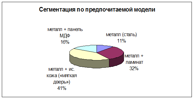 Рисунок 6 – Сегментация покупателей ООО «Редут» по предпочитаемому виду (модели) входной двери.