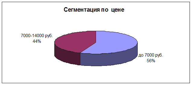 Рисунок 5 - Сегментация по цене Для сравнения была проведена сегментация покупателей входных дверей фирмы «Редут» и «Toodoors» по следующим критериям: 1). Сегментация покупателей по предпочитаемому виду (модели) входной двери (рис 6, рис. 7)