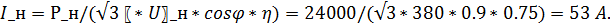 где Полная мощность и расчетный ток без учета компенсации реактивной мощности равны:
