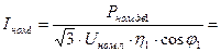 1. Определение номинальных токов двигательной нагрузки и нагрузки уличного освещения.