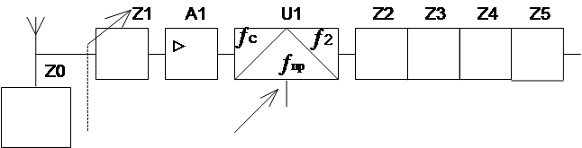 2.2 Выбор промежуточной частоты Так как для реализации своих исходных данных я выбрал схему супергетеродинного приемника, то большое значение для обеспечения постоянства его качественных показателей на заданном уровне, приобретает правильный выбор промежуточной частоты fпр. При выборе промежуточной частоты необходимо руководствоваться следующими соображениями. Промежуточная частота должна находиться вне диапазона принимаемых частот и не должна совпадать с частотами мощных радиостанций, в противном случае сигнал будет подавлен сигналами этих радиостанций. Промежуточная частота должна иметь стандартное значение, установленное ГОСТом, поскольку на таких частотах мощные радиостанции не работают. Выбранная промежуточная частота должна иметь такое значение, при котором наиболее эффективно можно будет обеспечить хорошую избирательность как по соседнему, так и по зеркальному каналу. Для обеспечения более высокой избирательности по зеркальному каналу Seз, промежуточная частота должна быть по возможности выше (зеркальный канал отстает от полезного на 2fпр), а для обеспечения избирательности по соседнему каналу Sез - как можно ниже (соседний канал отстает от полезного на величину 10 кГц). Однако с увеличением fпр ухудшается добротность избирательной системы фильтра сосредоточенной селекции (ФСC), а следовательно не произойдет обеспечение высокой избирательности по соседнему каналу, в следствии чего на нагрузке радиоприемного устройства (РПУ) будет выделяться сигнал с частотой fпр 10 кГц. Поэтому, чтобы этого не случилось необходимо, чтобы ФСC обладал достаточно высокой избирательностью, а это возможно только при достаточно низкой fпр, так как при уменьшении fпр увеличивается добротность. При большой fпр добротность ФСC меньше, его АЧХ имеет более пологие скаты и более широкую полосу пропускания, в которую входит сигнал с соседнего канала. В случае, если fпр меньше - добротность ФСC больше, полоса пропускания меньше и сигнал с соседнего канала в эту полосу не входит. Возникло противоречие: с одной стороны нужно увеличить fпр для обеспечения высокой Sез, с другой стороны нужно уменьшить Sпр для обеспечения высокой Sез. Поэтому чтобы удовлетворить эти два условия нужно выбрать необходимую fпр. Следуя ГОСТу видно, что промежуточная частота для ДВ, СВ и КВ диапазонов равна 465 кГц, для УКВ диапазонов 10,7 МГц, а для радиолокационных РПУ fпр = 100 МГц. Исходя из выше написанного, сделаем вывод, что для данного приемника промежуточная частота равна 465 кГц, так как данный приемник длинноволновый. Так же необходимо обеспечить избирательность по промежуточной частоте. Если на частоте равной промежуточной будет работать передатчик, то смеситель преобразователя для этой частоты будет являться резонансным усилителем и из-за некоторых резонансных свойств тракта ВЧ в нагрузке РПУ мы будем слышать на ряду с полезным сигналом сигнал-помеху на fпр. Ослабить этот побочный канал можно включением в цепь антенны фильтра "пробка". Из вышесказанного следует, что избирательность по побочным каналам, а так же другие показатели РПУ зависят от правильного выбора промежуточной частоты. 2.3Выбор параметров избирательной системы тракта ВЧ Избирательные системы тракта высокой частоты (ТВЧ) представляют собой резонансные системы. Они ставятся во входных цепях 