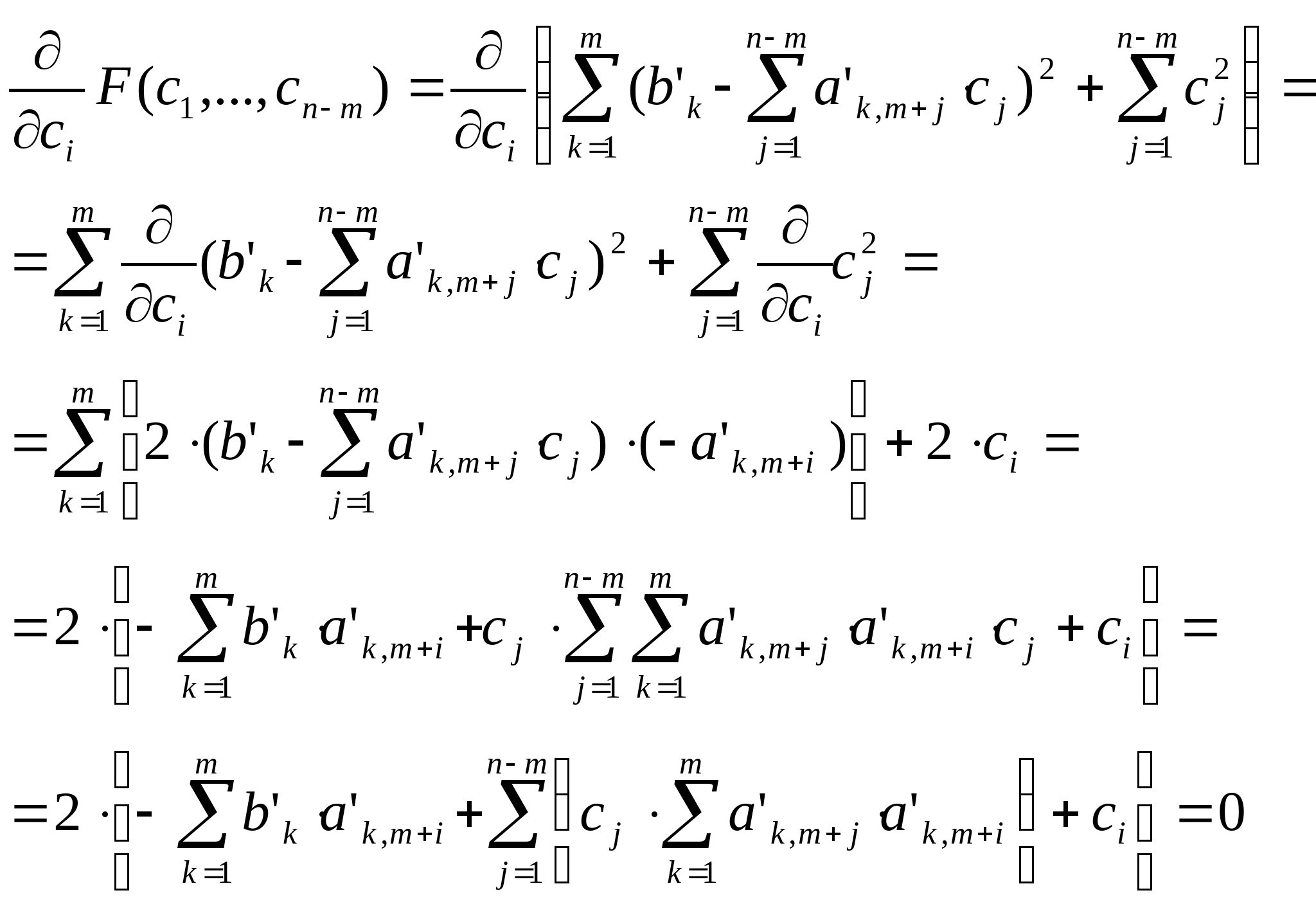 Решая эту систему получим искомое значение коэффициентов В MatLab: C = E \ D; Откуда вектор минимального по норме решения равен