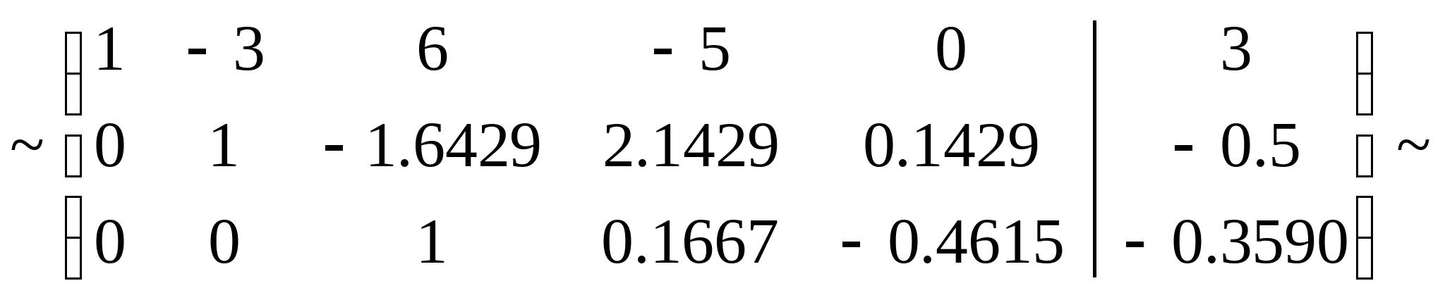 » A = 1 -3 6 -5 0 4 2 1 10 2 2 0 -9 1 6 B = 3 5 7 - - = = 1 = = - - Стандартное решение посредствам системы MatLab X = A\B X = 0 0 0.5427 0.0513 1.9722 Невязка Eps = 1.0e-015 * 0.8882 0 0 Евклидова норма N = 2.0462 - - = = 2 = = - - Решение MatLab c первоначальной диагонализацией по методу Гауса X = 0 0 0.5427 0.0513 1.9722 Невязка Eps = 1.0e-015 * 0 -0.2220 0.0555 Евклидова норма N = 2.0462 - - = = 3 = = - - Решение системы функцией SLAE Вектор решения минимизированный по евклидовой норме 0.8957 -0.4673 0.1265 0.0113 1.0560 Евклидова норма вектора решений 1.4669 Невязка Eps = 1.0e-015 * 0.4441 0 0 % SLAE % The decision of System of the linear algebraic equations % Решение системы линейных уравнений с минимизацией % вектора решения по евклидовой норме. % % Входные параметры: % A - матрица коэффициентов системы % B - вектор столбец решения системы % Выходные параметры: % X - вектор решений (A * X = B), минимизированный по норме % N - Евклидова норма % Eps - невязка B - A*X function [X, N] = SLAE(A, B) if (nargin < 2) error('Необходимо ввести матрицу системы и вектор свободных коэффициентов'); end; %Если матрица коэффициентов системы нулевая, %то вывод сообщения об ошибки и выход if (A == 0) error('Неправильное задание параметров'); end % m - число строк, n - число столбцов [m, n] = size(A); %Проверка на совместность системы if rank(A) ~= rank([A, B]) disp('Система не совместна'); for i = 1 : n X(i) = NaN; end X = X'; N = 0; return end % Если высота матрицы а и столбца b не совпадают % то выдача диагностирующего сообщения if m ~= length(B) error('Высота матрицы A и столбца B не совпадают'); end % Приведение расширенной матрицы A|B к диагональному виду A = rref([A, B]); B = A(:, n + 1); A = A(:, 1 : n); %m - число базисных строк m = rank(A); %Расчет коэффициентов С(1)..С(n-m), при которых вектор решения Х %будет минимальным по евклидовой норме. Приравнивая частные производные %нулю, составляем матрицу коэффициентов в и матрицу свободных коэффициентов E. %Соответствующие формулы смотрите в описании к программе. % i - номер строки, j - номер элемента в строке (номер столбца) for i=1:(n-m) for j=1:(n-m) D(i,j) = 0; for k=1:m D(i,j)=D(i,j)+A(k,i+m)*A(k,j+m); end if i==j D(i,j)=D(i,j)+1; end end E(i)=0; for k=1:m E(i)=E(i)+B(k)*A(k,i+m); end end %Транспонирование вектора-строки E в вектор-столбец и %вычисление коэффициентов С(1)..С(n-m) E = E'; C = в \ E; %Вычисление вектора решений в соответствии с найденными коэффициентами for k = m+1 : n X(k) = C(k-m); end for k = 1 : m X(k) = B(k); for j = 1 : (n - m) X(k) = X(k) - A(k, j+m)*X(j+m); end end %Транспонирование вектора-строки X в вектор-столбец X = X'; %Вывод РЕЗУЛЬТАТОВ disp('Вектор решения минимизированный по евклидовой норме'); disp(X); N = norm(X, 'fro'); disp('Евклидова норма вектора решений'); disp(N); %disp('Невязка Eps ='); %Eps = B - A*X return %Тестирование функции решения систем линейных алгебраических уравнений SLAE %Пример 1 % Матрица коэффициентов при неизвестных A = [ 1 -3 6 -5 0; 4 2 1 10 2; 2 0 -9 1 6 ] % Матрица свободных членов B = [ 3; 5; 7 ] % --== 1 ==-- disp('- - = = 1 = = - -'); disp('Стандартное решение посредствам системы MatLab X = A\B'); X = A\B; disp('X = '); disp(X); disp('Невязка Eps = ') disp(B - A*X); disp('Евклидова норма N = ') disp(norm(X, 'fro')); % --== 2==-- disp('- - = = 2 = = - -'); disp('Решение MatLab c первоначальной диагонализацией по методу Гауса'); % Приведение расширенной матрицы A|B к диагональному виду [m, n] = size(A); A = rref([A, B]); B = A(:, n + 1); A = A(:, 1 : n); X = A\B disp('Невязка Eps = '); disp(B - A*X); disp('Евклидова норма N = '); disp(norm(X, 'fro')); % --== 3 ==-- disp('- - = = 3 = = - -'); disp('Решение системы функцией SLAE'); % Повторный ввод параметров A = [ 1 -3 6 -5 0; 4 2 1 10 2; 2 0 -9 1 6 ]; B = [ 3; 5; 7 ]; [X, N3] = SLAE(A, B); disp('Невязка Eps = '); disp(B - A*X); |
