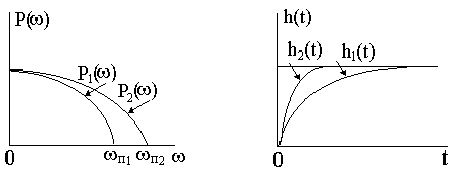 Рис. 4 2. Значение вещественной частотной характеристики в нуле соответствует установившееся значение переходной функции, т.е. P(0) Þ h( ¥ ) . Если P2 ( w )=кP1 ( w ) то графики переходных функций имеют вид (рис. 4). 3. Изменение масштаба по оси частот. Если P ( a × w ) = h (t/ a ). Графически это можно представить следующим образом (рис. 5).