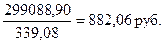 Средний дневной заработок для оплаты командировки исчисляется путем деления суммы заработной платы, фактически начисленной за отработанные дни в расчетном периоде, включая премии и вознаграждения, учитываемые в соответствии на количество фактически отработанных в этот период дней. Средний дневной заработок для оплаты отпусков, предоставляемых в календарных днях, и выплаты компенсации за неиспользованные отпуска исчисляется путем деления суммы заработной платы, фактически начисленной за расчетный период, на 12 и на среднемесячное число календарных дней (29,4). В случае если один или несколько месяцев расчетного периода отработаны не полностью или из него исключалось время в соответствии с пунктом 5 настоящего Положения, средний дневной заработок исчисляется путем деления суммы фактически начисленной заработной платы за расчетный период на сумму среднемесячного числа календарных дней (29,4), умноженного на количество полных календарных месяцев, и количества календарных дней в неполных календарных месяцах. Фактически начисленная заработная плата за 12 месяцев составила 299088,90 рублей, коэффициент равен 339,08 дня. Среднедневной заработок равен: Для начисления листов временной нетрудоспособности, а также других пособий из ФСС применяем следующие нормативные документы: Федеральный закон от 24 июля 2009 г. №213-ФЗ, Федеральный закон от 24 июля 2009 г. №212-ФЗ, Федеральный закон от 29 декабря 2006 г. №255-ФЗ (с изменениями от 9 февраля, 24 июля 2009 г.), постановление Правительства Российской Федерации от 15 июня 2007 г. №375 (в ред. Постановления Правительства от 19.10.2009 года №839) Пособие за первые два дня временной нетрудоспособности выплачивается за счет средств страхователя, а за остальной период, начиная с 3-го дня временной нетрудоспособности за счет средств ФСС РФ. Больничный оплачивается за счет средств ФСС с его первого дня в случае: - утраты трудоспособности вследствие заболевания или травмы, в том числе в связи с операцией по искусственному прерыванию беременности или осуществлением экстракорпорального оплодотворения; - необходимости осуществления ухода за больным членом семьи; - карантина застрахованного лица, а также карантина ребенка в возрасте до 7 лет, посещающего дошкольное образовательное учреждение; – осуществления протезирования по медицинским показаниям в стационарном специализированном учреждении; - долечивания в установленном порядке в санаторно-курортных учреждениях, расположенных на территории Российской Федерации, непосредственно после стационарного лечения. В зависимости от продолжительности страхового стажа пособие выплачивается: - страховой стаж 8 лет и более – 100% - страховой стаж от 5 до 8 лет – 80% - страховой стаж от полугода до 5 лет – 60% - страховой стаж менее полугода – пособие, выплачивается в размере, не превышающем МРОТ за полный календарный месяц. В районах и местностях, в которых в установленном порядке применяются районные коэффициенты к заработной плате, в размере, не превышающем минимального размера оплаты труда с учетом этих коэффициентов. Пособие рассчитывается исходя из среднего заработка, рассчитанного за последние 12 календарных месяцев работы, предшествующих месяцу наступления предыдущего страхового случая. Нововведением Федерального закона 213-ФЗ является то, что при исчислении среднего дневн