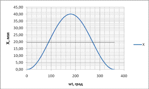 Рисунок 2.12.1 График перемещения поршня за один оборот. Определю скорости поршня