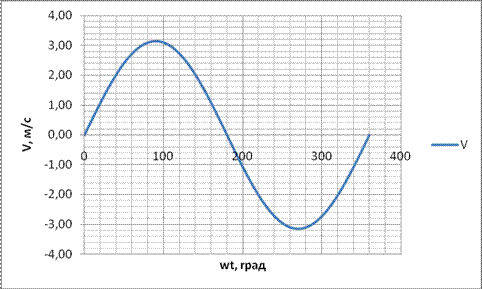 Рисунок 2.12.2 График скорости поршня за один оборот Определю ускорение поршня