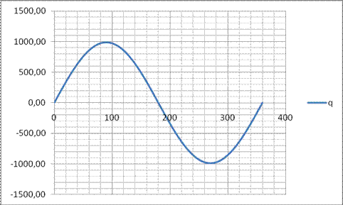 Рисунок 2.12.3 - График ускорения поршня за один оборот Мгновенная подача одним поршнем определяется по формуле