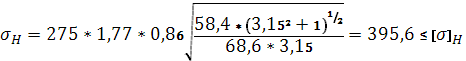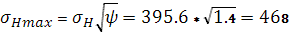 3.2 Розрахунок активних поверхонь зубців на міцність під час перевантаження, МПа: