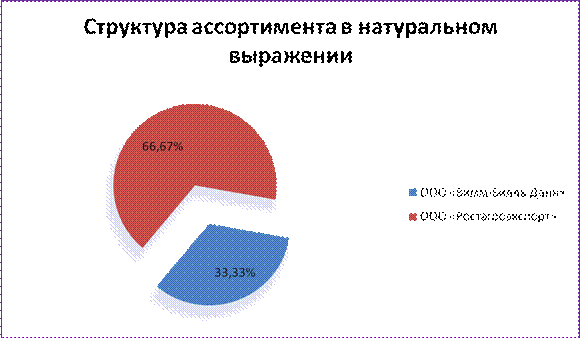Рисунок 2.1.1 - Структура ассортимента глазированных сырков в натуральном выражении.
