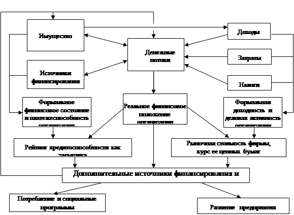 3. Расчет верхней границы денежных средств и точки возврата: Ch = 7920 + 21577 = 29 497 р. Cr = 7920 + 1 : 3 · 21577= 15 112 р. Таким образом, остаток средств на расчетном счете должен варьировать в интервале (7920, 29497); при выходе за его пределы необходимо восстановить средства на расчетном счете до 15112 руб. Следовательно, размах вариации будет больше, если ежедневная изменчивость денежных потоков велика или постоянные затраты, связанные с покупкой и продажей финансовых активов высоки. Он будет меньше, если есть возможность получения дохода благодаря высокой процентной ставке по ценным бумагам или по операциям с иностранной валютой. В модели Миллера – Орра не задается определенная величина пополнения денежных средств – она меняется в зависимости от ситуации с учетом параметров модели. Непосредственное внедрение этих моделей в отечественную практику пока затруднено ввиду значительной инфляции, аномальных учетных ставок, неразвитости рынка ценных бумаг и т. п. 55. Управление финансами Финансы – это совокупность финансовых объектов и способов управления ими. Под финансовыми объектами понимаются финансовые активы и обязательства, а управление ими означает систему организации эффективного их функционирования. С позиции практического управления финансами субъекта хозяйствования ключевым является умение более или менее обоснованно отвечать на ряд ключевых вопросов: · удовлетворены ли стратегические инвесторы деятельностью предприятия, направлением и динамикой его развития, положением в конкурентной среде? · каковы должны быть величина и оптимальный состав активов предприятия, позволяющие достичь поставленные перед предприятием цели и задачи? · где найти источники финансирования и каков должен быть их оптимальный состав? · как организовать текущее и перспективное управление финансовой деятельностью, обеспечивающее: (а) платежеспособность фирмы, (б) её финансовую устойчивость с позиции перспективы, (в) экономически эффективную, рентабельную работу в среднем и (г) ритмичность платежно-расчётных операций? Решаются эти вопросы в рамках финансового менеджмента как системы эффективного управления финансовой деятельности предприятия. Финансовый менеджмент – это система действий по оптимизации баланса хозяйствующего субъекта. Финансовые методы, приёмы, модели представляют собой основу инструментария, практически используемого в управлении финансами. Информация финансового характера, или информационная база, является основой информационного обеспечения системы управления финансами. Информационная база весьма обширна и включает обычно любые сведения финансового характера; в частности, сюда относятся бухгалтерская отчётность, сообщения финансовых органов, информация учреждений банковской системы, данные товарных, фондовых и валютных бирж, несистемные сведения. Объект системы управления финансами предприятия представляет собой совокупность трёх взаимосвязанных элементов: отношения, ресурсы, источники (обязательства) – именно этими элементами и пытаются управлять менеджеры. Под финансовыми отношениями понимаются отношения между различными субъектами (физическими и юридическими лицами), которые влекут изменение в составе активов и (или) обязательств этих субъектов. В основе финансовых отношений лежит система договоров. Эти от
