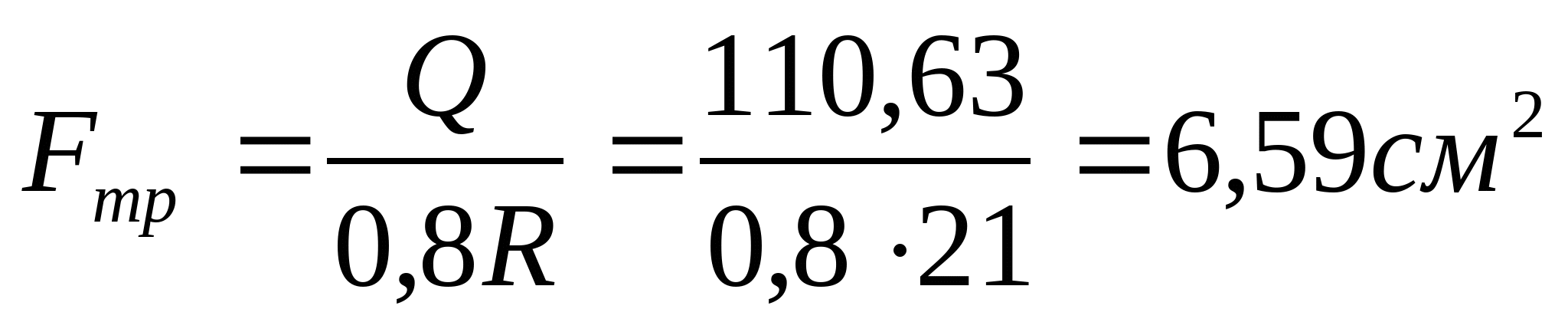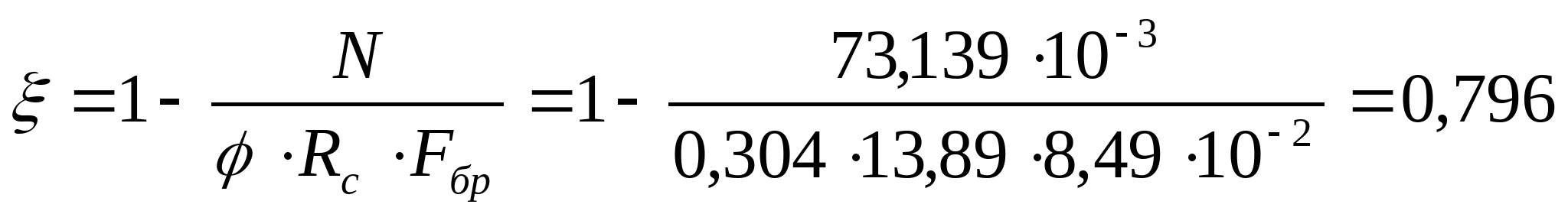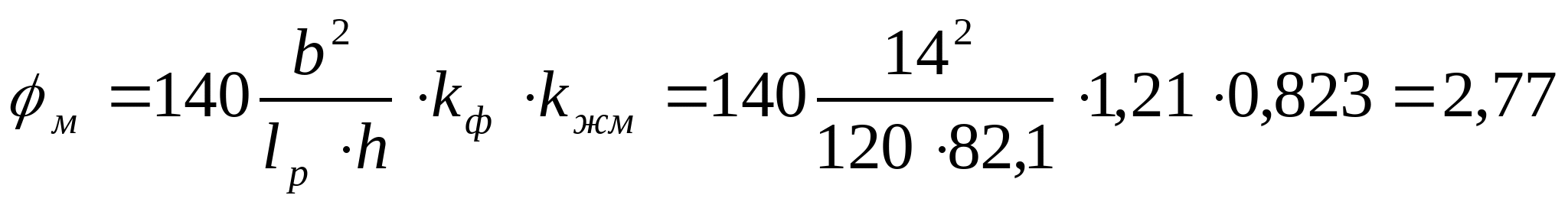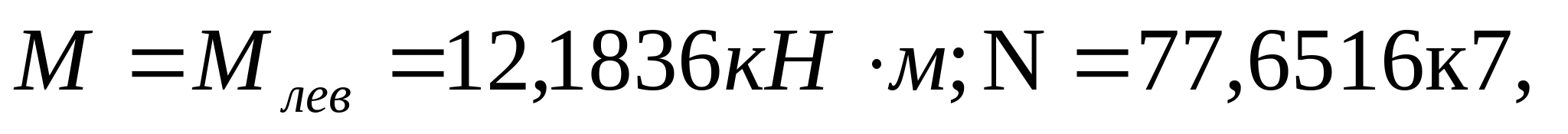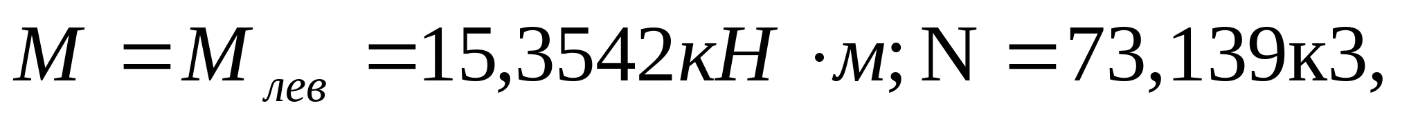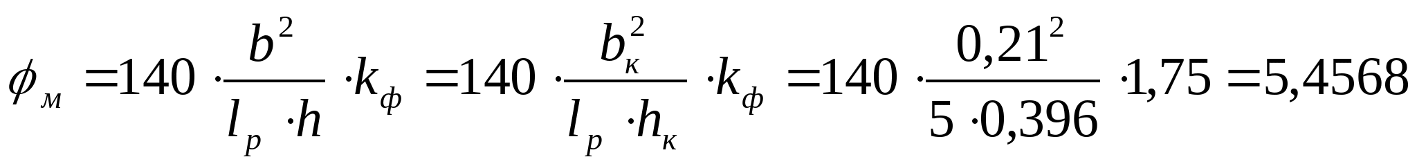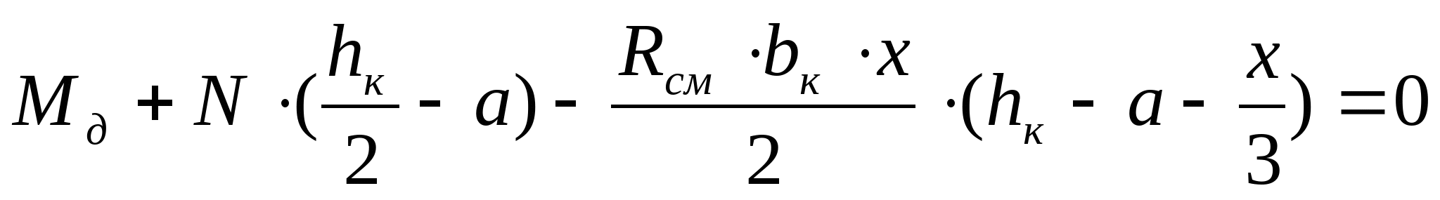 При N = 35,61 кН; Mд = 16,688 кН∙м; Rсм = 13,89 МПа; bк = 0,21 м; hк = 0,429 м получим: