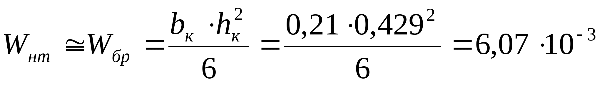 3.4 Расчет колонны 3.4.1 Расчет на прочность по нормальным напряжениям Расчет производится на действие N и M при первом сочетании нагрузок. Рассчитываем на прочность по формуле п. 4.16 СНиП ІІ-25-80: М = 15,3542 кН∙м; N = 73,139 кН Расчетная длина (в плоскости рамы): Н0 = 2,2 · Н = 2,2 · 5,6 = 12,32 м Площадь сечения колонны: Fнт Fбр = hк · bк = 0,21 · 0,429 = 8,49 · 10-2 м2. Момент сопротивления: