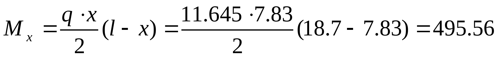 Т. к. Нагрузка на 1 м длины балки: а) нормативная: qн = 1,145· 4,2 = 4,81 кН/м2 б) расчетная: q = 1,631· 4,2 = 6,851 кН/м2 2.2 Определение геометрических размеров балки 1) Конструкция балки: Односкатная клеедощатая балка с уклоном верхней грани I = 0,04изготовлена из сосновых досок 2 сорта размером 150Ч40 мм. Доска после фрезерования будет иметь размер 140Ч33 мм. Высота балки была принята ранее в п. 1.1.7. Корректируем полученные размеры: hтр = 31 · 3,3 = 102,3 см hоп = h-0,5 · l · I = 99-0,5 · 1500 · 0,04 = 69 см, следовательно hоп = 21·3,3 = 69,3 см. Проверка принятого сечения: Сечение с максимальными нормальными напряжениями находится на расстоянии х от опор: Изгибающий момент в этом сечении: Высота балки в сечении х = 4,41 м: hх = hоп + х · I = 0,693 + 4,41 · 0,04 = 0,821 м Момент сопротивления: Максимальное напряжение: где mа = 0,9 – для элементов, подвергнутых глубокой пропитке антипиренами под давлением, п. 3.2 [2]. 2) Проверяем прочность по максимальным касательным напряжениям. Момент инерции в опорном сечении: