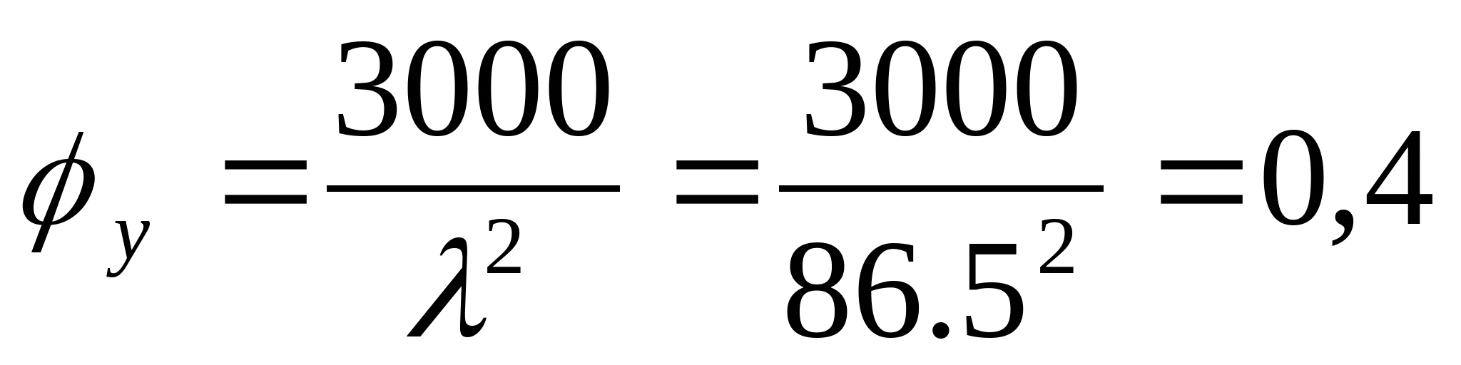 Следовательно, устойчивость обеспечена. 3.4.3 Расчет на устойчивость из плоскости как центрально-сжатого стержня. φ = 0,557 (см. расчет на устойчивость плоской формы деформирования); N = 73,139 кН (для второго сочетания нагрузок): Fрасч = Fнт = Fбр = 8,49 ∙ 10-2 м2; Rc = 11/0,95 = 11,57 МПа
