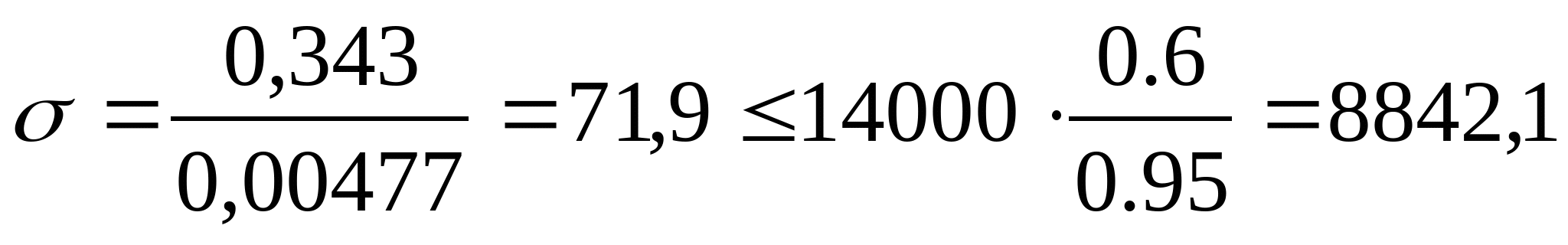 Расчетное сопротивление определяем по формуле (1.2.8): R = 6 ·104 · 0,6 · 0,75 · 0,34/0,95 = 7247,37кН/м2 80,252 кН/м2 ≤ 7247,37кН/м2 Проверка по деформациям плиты: