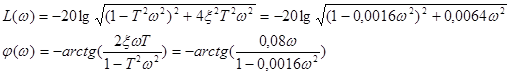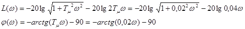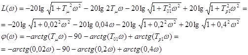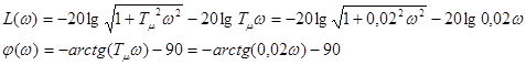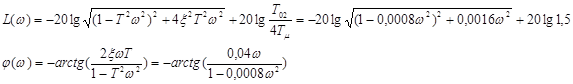 Расчет ЛФЧХ при управляющем воздействии представлен в таблице 7, а при возмущающем в таблице 8. Расчет ЛФЧХ при управляющем воздействии Таблица 7