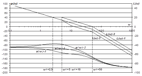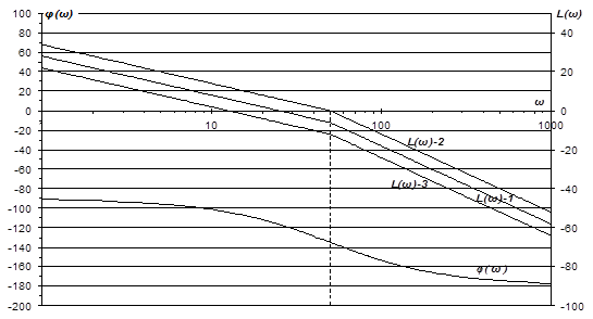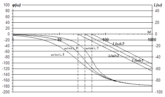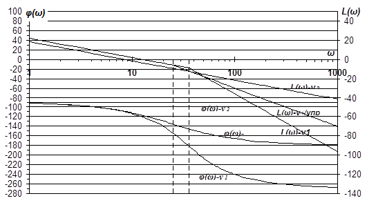 Рис.16 Логарифмические частотные характеристики разомкнутых САР при возмущающем воздействии