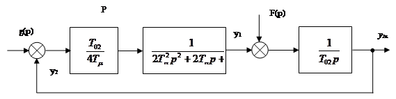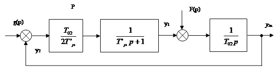 где T’ μ =2Tμ =0,04с. 3.6.2 Возмущающее воздействиеРазомкнутая САР при возмущающем воздействии, когда выходом является выходная величина внешнего контура, представляет собой интегрирующее звено объекта регулирования.