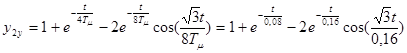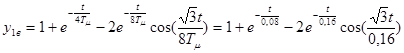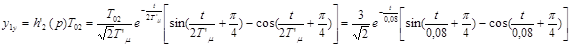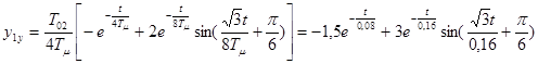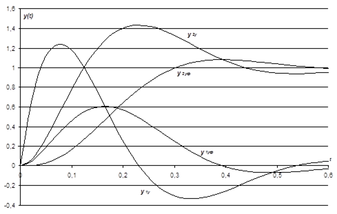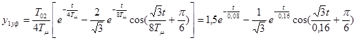 где T’ μ =2Tμ =0,04с. Функции являются оптимальными. 3.4 Аналитический расчет переходных процессовИспользуя обратное преобразование Лапласа, находим переходные функции разомкнутых и замкнутых САР при возмущающем и управляющем воздействиям для случаев, когда выходной величиной является выходная величина либо внешнего контура, либо внутреннего контура. По причине сложности и громоздкости расчеты обратного преобразования Лапласа не приводятся. 3.4.1 Расчет переходных процессов по управляющему воздействиюПереходная функция системы при единичном управляющем воздействии, когда выходной величиной является выходная величина внешнего контура