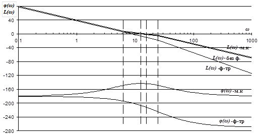 Рис.5. Логарифмические частотные характеристики замкнутой САР