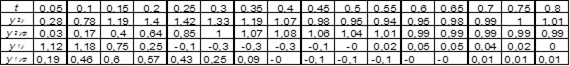 где T’ μ =2 Tμ =0,04с. Подставляя значения времени, строим кривые переходных процессов при управляющем воздействии. Расчет кривых переходного процесса представлен в таблице 5, а построение - на рис.12 Расчет данных для построения кривых переходных процессов Таблица 5