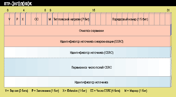 Т.о. современные приложения не могут допустить, чтобы их пакеты поступали с опозданием. Два протокола позволяют гарантировать своевременность доставки с обеспечением качества услуг – это протоколы RTP( Real-Time Transport Protocol) и RSVP (Resource Reservation Protocol) . RTP гарантирует доставку данных одному или более адресатам с задержкой в заданных пределах. RSVP позволяет конечным системам резервировать сетевые ресурсы для получения необходимого качества услуг, в особенности ресурсы для трафика реального времени по протоколу RTP. Почему нельзя использовать стандартные протоколы ? Наиболее широко используемый протокол транспортного уровня - это TCP . Несмотря на то что TCP позволяет поддерживать множество разнообразных распределенных приложений, он не подходит для приложений реального времени. Использование TCP в качестве транспортного протокола для этих приложений невозможно по нескольким причинам. Во-первых, этот протокол позволяет установить соединение только между двумя конечными точками, следовательно, он не подходит для многоадресной передачи, которая применяется в приложениях реального времени таких как, например, конференции. Он предусматривает повторную передачу потерянных сегментов, прибывающих, когда приложение реального времени уже их не ждет. Кроме того, у TCP нет удобного механизма привязки информации о синхронизации к сегментам - другое требование приложений реального времени. Другой широко используемый протокол транспортного уровня UDP не имеет первых двух ограничений (соединение точка-точка и передача потерянных сегментов), но и он не предоставляет критической информации о синхронизации. Таким образом, UDP не предоставляет сам по себе каких-либо инструментов общего назначения для приложений реального времени. Транспортный протокол реального времени RTP. Несмотря на то, что каждое приложение реального времени может иметь свои собственные механизмы для поддержки передачи в реальном времени, они имеют много общих черт, а это делает желательным определение единого протокола. Стандартный протокол такого рода – RTP, определенный в RFC 1889. Реальность реального времени. Однако ввиду вариации задержки при передаче пакетов по сети они прибывают через нерегулярные интервалы времени. Для компенсации этого эффекта поступающие пакеты буферизуются, придерживаются на некоторое время и затем предоставляются с постоянной скоростью программному обеспечению, генерирующему вывод. Чтобы такая схема работала, каждый пакет получает отметку о времени - таким образом, получатель может воспроизвести поступающие данные с той же скоростью, что и отправитель. Многоадресная передача. RTP поддерживает передачу данных в реальном времени между несколькими участниками сеанса. ( Сеанс - это логическое объединение двух и более объектов RTP, которые обслуживаются при передачи данных.) Хотя RTP может использоваться и для одноадресной передачи в реальном времени, его сила в поддержке многоадресной передачи . Для этого каждый блок данных RTP содержит идентификатор отправителя, указывающий, кто из участников генерирует данные. Блоки данных RTP содержат также отметку о времени, чтобы данные могли быть воспроизведены с правильными интервалами принимающей стороной. Кроме того, RTP определяет формат полезной нагрузки передаваемых данных. С этим напрямую связана концепци