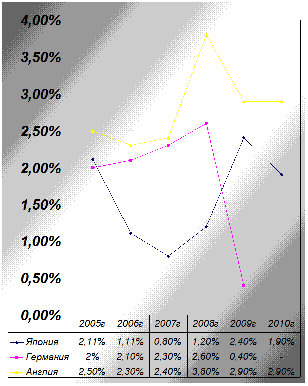 Приложение 2 Изменение уровня инфляции в Японии, Германии, Англии за 2005-2010гг.