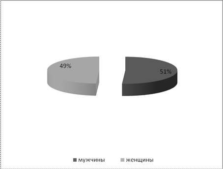 Рис. 2.4. Структура посетителей магазина по половому признаку В среднем же, от общего числа опрошенных респондентов это составляет 63% и превышает количество женщин на 54%. Это объясняется тем, что люди данного возраста, как правило, уже состоявшиеся. Возрастная структура исследуемой выборки представлена на рис. 2.5