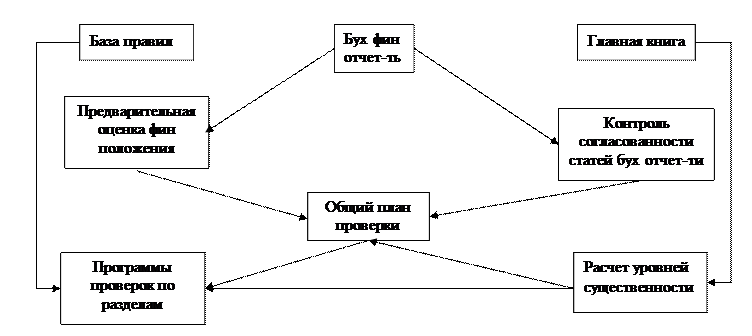В м\н практике аудита применяются 2 подхода к орг-и ауд проверки: -по объектный – хоз операции исследуются с т.з. обособленного получения док-в в отн-и отдельных счетов бу. Здесь одна и та же хоз операция может исследоваться несколько раз (обычно более 2) разными экспертами. Это, как минимум, нерационально с т.з. времени, отводимого на ауд проверку -циклический – объектом ауд исследования явл-ся взаимосвязи м\у объектами учета, образующиеся при проведении хоз операций. Исследуя, как проведены в учете хоз операции, аудитор выражает частное мнение о достоверности отражения каждой проверяемой операции, как минимум по 2 счетам рабочего плана счетов. Частные методы аудита фиксируются в базе данных . Такой подход повышает кач-во ауд проверки. В кач-ве примера такого подхода можно рассматривать аудит затратных счетов (сч 20, 23, 25, 26). На этих счетах собирается большой объем инфы, полученный при аудите др разделов. Принятый способ обработки инфы явл-ся хорошим средством контроля кач-ва аудита. В случае если аудитор отмечает факт нарушения по к-л хоз операции, то зафиксированное им нарушение повлияет на оценку достоверности по др разделу, к-ый будет проверять др специалист. Он в свою очередь может согласиться или не согласиться с мнением коллеги. Возникшее противоречие они обязаны разрешить до окончания ауд проверки. Аналогично обстоит дело с заполнением тестов таблиц по выполнению правил бу. Если разные аудиторы выразили противоположное мнение по одному и тому же правилу, то прога выдает сообщение рук-лю проверки о несоот-и. Т.о. прога автоматически поддерживает целостность и непротиворечивость собранной в ходе автоматизированного аудита инфы, обеспечивая рук-лю проверки вывод обобщенной инфы по проверяемому субъекту с возм-тью детализации до уровня отдельных хоз операций. Кроме того, автоматизированными ауд прогами предусмотрено: - автоматическое формирование данных о затраченных аудитором времени на проверку, сведен к минимуму процесс документирования, - абсолютная воспроизводимость, полученных в ходе аудита рез-в. 32. Подготовительный этап проведения автоматизированной ауд проверки