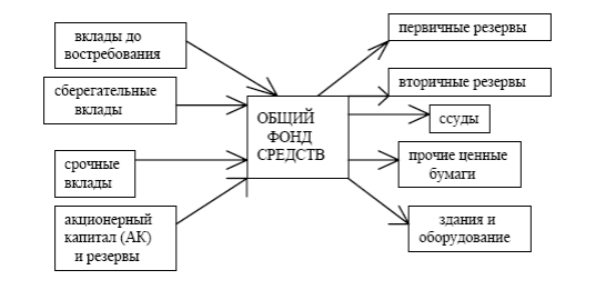 Все ресурсы банка (собственные и привлеченные) образуют общий фонд средств, который размещается по активам на основе текущих приоритетов либо с позиций обеспечения текущей ликвидности, либо обеспечения спекулятивной прибыли. Метод считается рискованным. Им в отдельные периоды могут пользоваться только банки с высокой финансовой устойчивостью. Метод распределения активов или консервации средств имеет широкое распространение в банковской практике. Он базируется на скорости обращения различных видов привлечения ресурсов. Управление осуществляется одновременно пассивами и активами путем их координации по срокам и размерам. Метод приводит к созданию внутри банка относительно обособленных “центров ликвидности-прибыльности”.