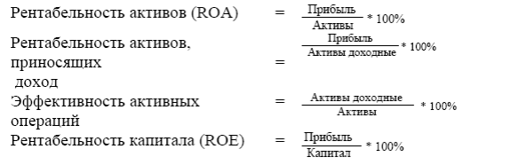 Для расчета прибыли выделяют процентные и непроцентные доходы и расходы. Прибыль банка характеризует конечный финансовый результат, отражается по пассивному сч. №703. Балансовая прибыль представляет собой разницу между доходами (сч. №701) и расходами (сч. №702). Убытки (превышение расходов над доходами) отражаются на сч. №704 (А). Банки уплачивают следующие налоги: • Налог на прибыль и налог на операции с ценными бумагами (отражаются на сч. №70501 - “Использование прибыли отчетного года”); • Налог на добавленную стоимость, налог на имущество, налоги в дорожные фонды, местные налоги и плата за землю (отражаются по дебету сч. №70209 - “Другие расходы”). Доходность (рентабельность) деятельности банка отражается системой показателей (коэффициентов). К основным показателям относятся: