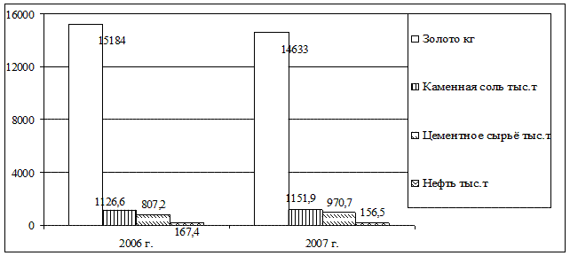 Указанные полезные ископаемые являются не только одной из ведущих основ развития производительных сил области, но и важнейшей составляющей экономической безопасности России. В соответствии с этим создание надежной многокомпонентной минерально-сырьевой базы обеспечит удовлетворение текущих и перспективных потребностей экономики России с учетом социальных, демографических, оборонных, экологических и других факторов на территории области. Поэтому обеспечение устойчивого развития экономики области и России минеральными ресурсами с учетом возрастающей потребности в них требует заблаговременного восполнения и расширения добывающих мощностей, наращивания масштабов воспроизводства минерально-сырьевой базы на перспективу с ориентацией сырьевого самообеспечения с существенной долей Область входит в число первых десяти субъектов Российской Федерации по запасам газа и конденсата, обладает существенными запасами и ресурсами нефти. Из 54 учтенных государственным балансом запасов полезных ископаемых на территории области видов минерального сырья добывается 20 видов на 500 месторождениях полезных ископаемых. По масштабам переработки горной массы ведущее положение в области занимает добыча золота, угля, железных руд. В структуре промышленной продукции области доля горно-добывающей отрасли составляет около 12% [30]. Далее, в нижеприведенной схеме по стоимости первичного товарного продукта представлена доля полезных ископаемых в горно-добывающей отрасли области (см. рис. 3.5.) [34]. Суммарная годовая стоимость товарного продукта составляет более 18 млрд. рублей. Особенности геологического строения региона обусловили нахождение в области широкого разнообразия месторождений полезных ископаемых. Недропользователями в 2007 г. обеспечен следующий объем добычи основных полезных ископаемых в Иркутской области [34], что показано Данная таблица проиллюстрирована рисунком 3.6 [32]. Фактически в 2007 г. поступления платежей за пользование недрами в консолидированный и областной бюджеты складывались из следующих видов: налог на добычу полезных ископаемых, платежи при пользовании недрами, задолженность и перерасчеты по отмененным налогам, сборам (платежи за пользование недрами, отчисления на воспроизводство минерально-сырьевой базы).