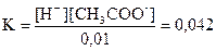 Запишемо вираз для константи дисоціації оцтової кислоти:
