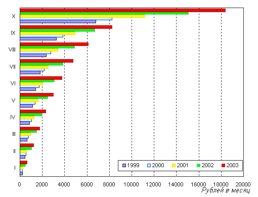 Приведенные данные представляют собой оценку нижней границы уровня и масштабов незарегистрированной первичной занятости, поскольку относятся преимущественно к неформально занятым по найму в формальной экономике. Для оценки незарегистрированной занятости в масштабах страны недостаточно оперировать показателями, относящимися только к основной работе. Следует учитывать и неформальную дополнительную занятость, ставшую в 90-е годы массовым явлением. Уровень последней существенно различается по категориям населения: 7,5% среди занятых, 15,2%- среди безработных, 3,8% - среди экономически неактивных граждан в возрасте 15-72 года. Аналогичные показатели для населения в трудоспособном возрасте составили 7,8%, 15,3%, 6,2% и 8,3%, соответственно (табл.3). Экстраполируя эти данные на численность названных групп, можно оценить масштабы неформальной занятости на дополнительной работе в 6,7-6,8 млн. чел. в 1999 – 2000 гг. и 8,9-9 млн. в 2001 году. Таблица №3