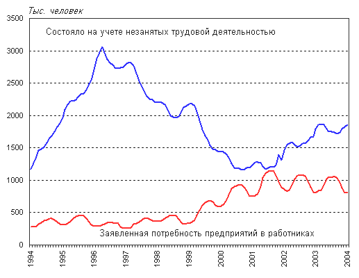 2.2. Проблема занятости и безработицы К числу угроз экономической безопасности относится рост безработицы. Этот процесс, негативный сам по себе, вызывает особую тревогу тогда, когда безработица приобретает массовый и застойный характер. Конфликтность ситуации обостряется и тем, что растущая безработица накладывается на специфическую российскую ментальность населения. Она резко усиливает дискомфортность в положении людей, служит питательной средой для роста преступности. Работать эффективно и производительно становится невыгодным и малопривлекательным. А это уже серьезная угроза экономической безопасности страны [2].