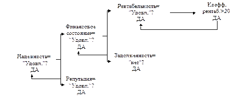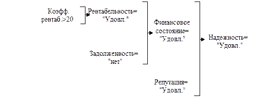 Рис. 2.5. Функции принадлежности нечеткого множества “Оценка рентабельности” При объединении факторов уверенности конъюнктивно или дизъюнктивно связанных аргументов используются следующие формулы: Конъюнкция (А и В) : min (cfA, cfB) или cfA*cfB/100 Дизъюнкция (А или В): max (cfA, cfB) или cfA + cfB - cfA*cfB/100 Объединение факторов уверенности в посылках правил осуществляется чаще всего, как например, в программном средстве GURU, по формулам "min/max", а левых и правых частей правил и одинаковых результатов нескольких правил соответственно по формулам "произведение” и “сумма". Для объединения одинаковых результатов нескольких правил используется оператор “+=“, который означает не присваивание значения, а добавление значения. Аналогично используется оператор “- =” для удаления значения. Факторы уверенности в последнем случае объединяются по формуле: cfA*(100 - cfB)/100 Рассмотрим применение аппарата нечеткой логики на примере оценки надежности поставщика, в котором кроме фактора финансового состояния учитывается и фактор формы собственности. Пусть государственное предприятие не имеет задолженность с уверенностью 60 и предполагается, что его рентабельность удовлетворительна с уверенностью 80. Фрагмент множества правил имеет следующий вид: Правило 1: Если Задолженность = "нет" и Рентабельность = "удовл." То Финансовое_состояние = "удовл." cf 100 Правило 2: Если Финансовое_состояние = "удовл." То Надежность += "есть" cf 90 Правило 3: Если Предприятие = "государств." То Надежность+ = "есть" cf 50 Результат выполнения первого правила: cf(посылки) = min(60,80) = 60, cf(Фин_сост.="удовл.") = 60*100/100 = 60. Результат выполнения второго правила: cf(Надежность="есть") = 60*90/100 = 54 Результат выполнения третьего правила: cf(Надежность="есть") = 54 + 50 - 54*50/100 = 67 Динамические модели. Моделирование рассуждений человека, как правило, не сводится только к прямой или обратной аргументации. Сложные проблемы решаются путем выдвижения во времени нескольких гипотез с анализом подтверждающих фактов и непротиворечивости следствий. Причем для многоцелевых проблемных областей происходит увязка гипотез по общим ограничениям. При этом возможны задержки в принятии решений, связанные со сбором подтверждающих фактов, доказательством подцелей, входящих в ограничения. Следовательно, для подобных динамических проблем важна рациональная организация памяти системы для запоминания и обновления получаемых промежуточных результатов, обмен данными между различными источниками знаний для достижения нескольких целей, изменение стратегий вывода с выдвижения гипотез (прямая аргументация) к их проверке (обратная аргументация). Целям построения таких гибких механизмов вывода служит применение технологии "доски объявлений", через которую в результате осуществления событий источники знаний обмениваются сообщениями. В целях динамического реагирования на события некоторые продукционные модели используют специальные правила-демоны, которые формулируются следующим образом: "Всякий раз, как происходит некоторое событие, выполнить некоторое действие". Например: Всякий раз, как становится известным значение переменной "Поставщик", Выполнить набор правил "Финансовый анализ предприятия" В программном средстве GURU подобное правило будет записано следующим образом: IF: KNOWN(“Поставщик”) = true THEN: CONSULT FIN_AN Для динамических экспертных систем хар