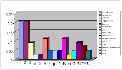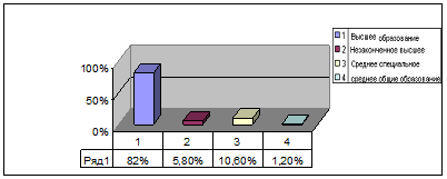 Рис. 3. Кадровое обеспечение преподаваемых предметов. Анализ данных (рис.3 ) показывает, что все предметы учебного плана ведутся , однако преподавание обеспечивается за счет перегрузки основного состава. Достаточно высок образовательный ценз педагогического состава. Из 85 педагогов имеют высшее образование – 70 человек, незаконченное высшее – 5 человек, среднее специальное – 10 человек.