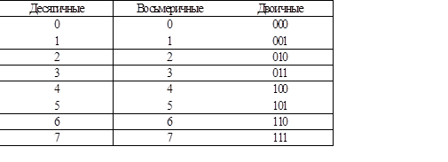 Рассмотрим различные преобразования. Преобразуем двоичное число 10 101 001 100 в восьмеричный эквивалент. Начиная с младшего бита двоичное число разделяем на группы из 3 бит. Затем используя табл.10.5, преобразуем каждую группу в восьмеричную цифру. Двоичное число 010 101 001 100 Восьмеричное число 2 5 1 4 Таким образом 101010011002=25148 . Осуществим обратное преобразование. При этом каждая восьмеричная цифра заменяется двоичным эквивалентом на основании табл.10.5. Например, 57348=101 111 011 1002 . Восьмеричное число 5 7 3 4 Двоичное число 101 111 011 100 Преобразование восьмеричного числа в десятичное показано в табл.10.6. Таблица 10.6. Восьмерично-десятичные преобразования
