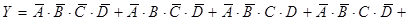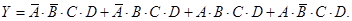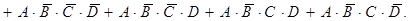 Заполненная карта Карно для данного выражения показана на рис.10.13. Группы из двух и четырёх единиц объединены конурами. Контур, содержащий две единицы, даёт возможность опустить D