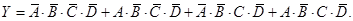 заполненная карта Карно приведена на рис.10.10. Каждая группа из двух соседних единиц составляет один контур. Булево выражение в дизьюктивной нормальной форме будет содержать два члена. В нижний контур входят С