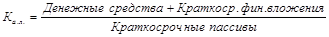 Расчет коэффициентов ликвидности проводится по следующим формулам: