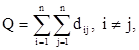 где aij – элементы матрицы смежности. Данная характеристика является косвенной оценкой экономичности и надежности исследуемой структуры и определяет принципиальную возможность функционирования и сохранения связей системы при отказе некоторых ее элементов. Система с большей избыточностью R потенциально более надежна, но менее экономична, т.к. R = 0, система обладает минимальной избыточностью. Возможны три варианта: если R < 0, то система несвязная; R = 0, система обладает минимальной избыточностью; R > 0, система имеет избыточность; чем выше R, тем выше избыточность. Для существующей: R = 1/2 × 62 × 1/(32 – 1) – 1 = 0, то есть структура имеет минимальную избыточность. Для предлагаемой организации: R = 1/2 ×56 × 1/(29 – 1) – 1 = 0, то есть структура имеет минимальную избыточность. 4. Определяю структурную компактность структуры Q, которая отражает общую структурную близость элементов между собой. Для этого используем формулу: