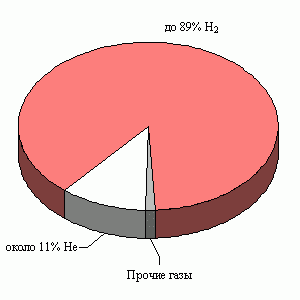Атмосфера Сатурна Атмосфера Сатурна - в основном, водород и гелий. Но из-за особенности образования планеты большая, нежели на Юпитере, часть Сатурна приходится на другие вещества. "Вояджер 1" выяснил, что около 7 процентов объема верхней атмосферы Сатурна - гелий (по сравнению с 11-ю процентами в атмосфере Юпитера), в то время как почти все остальное - водород