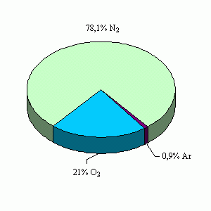 Земля достаточно массивна и удерживает возле себя атмосферу Состав ее у поверхности Земли: 78,1% азота, 21% кислорода, 0,9% аргона, в незначительных долях процента углекислый газ, водород, гелий, неон и другие газы. В нижних 20 км содержится водный пар (у земной поверхности — от 3% в тропиках до 2·10-5% в Антарктиде), количество которого с высотой быстро убывает. Углекислота - наиболее важная следовая компонента атмосферного воздуха. Высокая концентрация кислорода (возникшая примерно 2000 млн. лет назад) является прямым результатом существования растений. Присутствие кислорода позволило сформироваться в верхних слоях атмосферы озонному слою (на высоте 20-25 км), который экранирует поверхность планеты от солнечного ультрафиолетового излучения, вредного для жизни. Выше 100 км растет доля легких газов, и на очень больших высотах преобладают гелий и водород; часть молекул разлагается на атомы и ионы, образуя ионосферу. Давление и плотность воздуха в атмосфере Земли с высотой убывают. В зависимости от распределения температуры атмосферу Земли подразделяют на тропосферу, стратосферу, мезосферу, термосферу, экзосферу. Неравномерность ее нагревания способствует общей циркуляции атмосферы, которая влияет на погоду и климат Земли. Атмосфера Земли обладает электрическим полем.