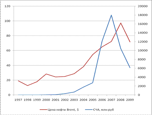 Из таблицы 1 видно, первые годы инвестиции были не очень активны, т.к. через год после отрытия в августе 1998 года был дефолт, который подорвал всяческий интерес населения к каким-либо инвестициям. После дефолта фонд смог восстановить потерянное только к 2000 году. После чего начался рост инвестиций в фонд, переросший к 2006-2007 в настоящий бум инвестирования. Который закончился, опять таки в августе 2008 года, в самый разгар мирового ипотечного кризиса. На текуший момент СЧА фонда находятся ниже уровня 2006 года. На основе данной таблице мы выведем график, по которому наглядно будут видны все пики.